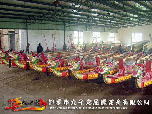汨羅市九子龍屈原龍舟有限公司2013年成立于湘楚文化屈原圣地-----汨羅江畔。它既是龍舟競渡的源頭,又是祖輩制造龍舟的基地。廠長許桂生從事龍舟制作已有30余年歷史,為繼承祖傳制造龍舟富有一定的經驗。我廠是全國新型混合龍舟生產基地;中國龍舟協會器材委員會委員;通過了ISO9001國際質量體系認證。本廠其獨特的制作工藝成為了非物質文化遺產傳承廠家。自一九八九年開始生產國際標準龍舟以來,岳陽市歷屆賽事龍舟均由本廠員工生產,湖南省岳陽九子龍龍舟公司生產的龍舟都是現任廠長負責技術和組織工人的,其產品曾銷往北京第六屆民運會、上海三龍邀請賽、上海第四屆錦標賽、吉林冬運會?,F在本廠融入沿海玻璃鋼技術,保留了傳統,提高了產品質量,現生產各種型號國際標準龍舟及各種民間龍舟...